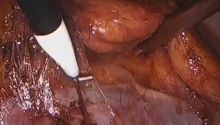 Laparoscopic freeing of the lower rectum is facilitated by the use of ultrasonic scissors or a vessel-sealing device.