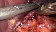 Low division of lateral ligaments exposes the lower pelvic space. This is done on the right side of the rectum, then on the left side. On the left side, the peritoneal reflection of the paracolic gutter should be incised down to the left lateral side of the rectum. One or more branches of the middle hemorrhoidal vessels joining the rectum on its anterior lateral surfaces are usually found on the lower part of lateral ligaments. These branches are infrequent, not always bilateral, and occasionally multiple. They should be controlled by clips or coagulation (bipolar forceps, vessel sealing device or ultrasonic scissors). At this level, the terminal branches of the pelvic nerve plexi run to the bladder, prostate, and genital organs (Enker et al., 1995; Enker et al., 2000). |