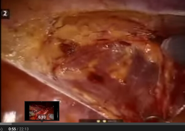 This inguinal hernia is done using laparo-scopy and robotic assistance to minimize bleeding, enhance dissection, decrease operative time, and extend better outcomes to my patients. This is the first recorded case of me using a new mesh, made by Covidian, called Progrip which eliminates the need for sutures.