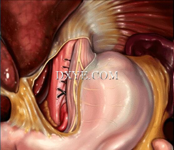 Paul MG, DeRosa RP, Petrucci PE, Palmer ML, Danovitch SH. Laparoscopic tension-free repair of large paraesophageal hernias. Surg Endosc 1997;11:303-7.