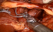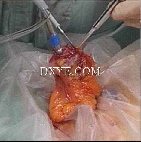 Laparoscopic freeing of the lower rectum is facilitated by the use of ultrasonic scissors or a vessel-sealing device.