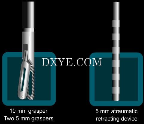 Laparoscopic access to the megaesophagus is still considered the approach of choice, especially when the surgeon combines an anti-reflux procedure with the myotomy (Pellegrini et al., 1992). In addition, patients generally tolerate laparoscopy better than thoracoscopy, which can cause persisting intercostal pain for a number of weeks postoperatively. Nevertheless, mastering the thoracoscopic approach is useful, especially for patients with a contraindication to the abdominal approach, or for whom a high myotomy is indicated (Shimi et al., 1992). |