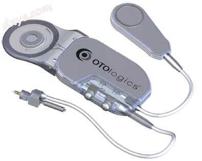图-5. OTOlogics Carina完全植入式系统。 (Courtesy OTOlogics, Boulder, CO.)