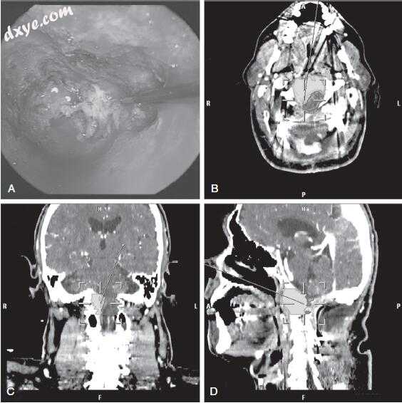 图-28. 手术图像引导系统被用来识别位于颅颈交界处的骨瘤。 |