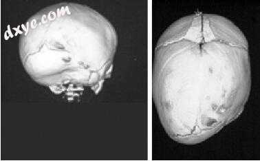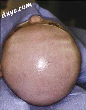图-9. 双侧冠状缝线骨质疏松症导致短头畸形。