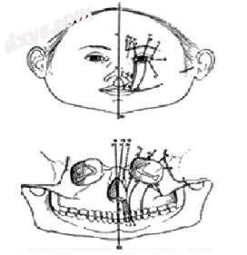 图-31. 旁正中四盒矫形矫治远视矫正术 (Modfied from Mathes SJ, ed. Plastic surgery. Vol 4: Pediatric Surgery, Philadelphia: Elsevier; 2006:373.)
