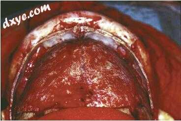 图-25. 将骨移植物置于眼眶窝和前颅窝之间以重建眶顶。