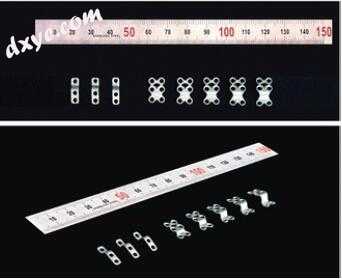 图4.5用于颏成形术的预弯钛板。这些板用于根据术前测量控制下巴前进或后退期间的前后调节程度