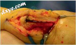 图12.16然后通过使用McGlamry提升释放侧悬韧带,通过同一切口进行关节内关节内释放