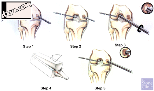 移植的组织是使用一种曲啡进行采集,该曲啡撞击到股骨外侧dy内侧边界的关节软骨边缘和下方的松质骨中