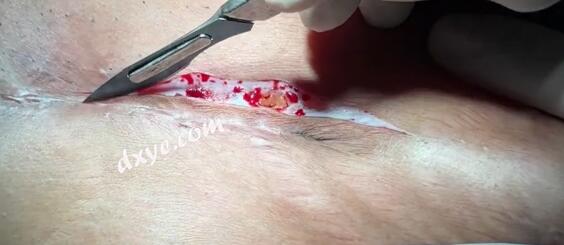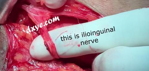 👉 在切开 EO 腱膜后进行开放式修复时,由于精索中有囊,因此与男性不同,囊很容易被识别。